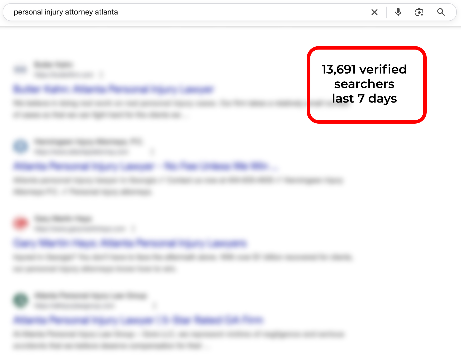 “Personal Injury Attorney Atlanta” → 13,691 verified searchers last 7 days
