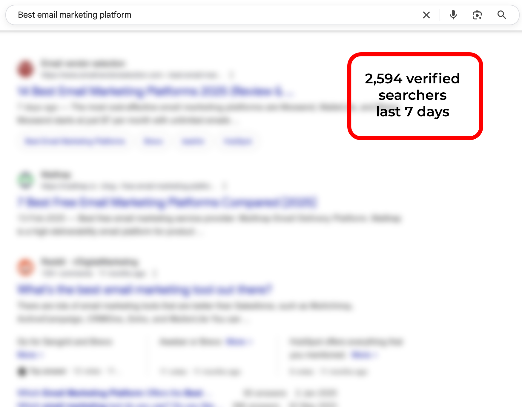 “Best email marketing platform” → 2,594 verified searchers last 7 days